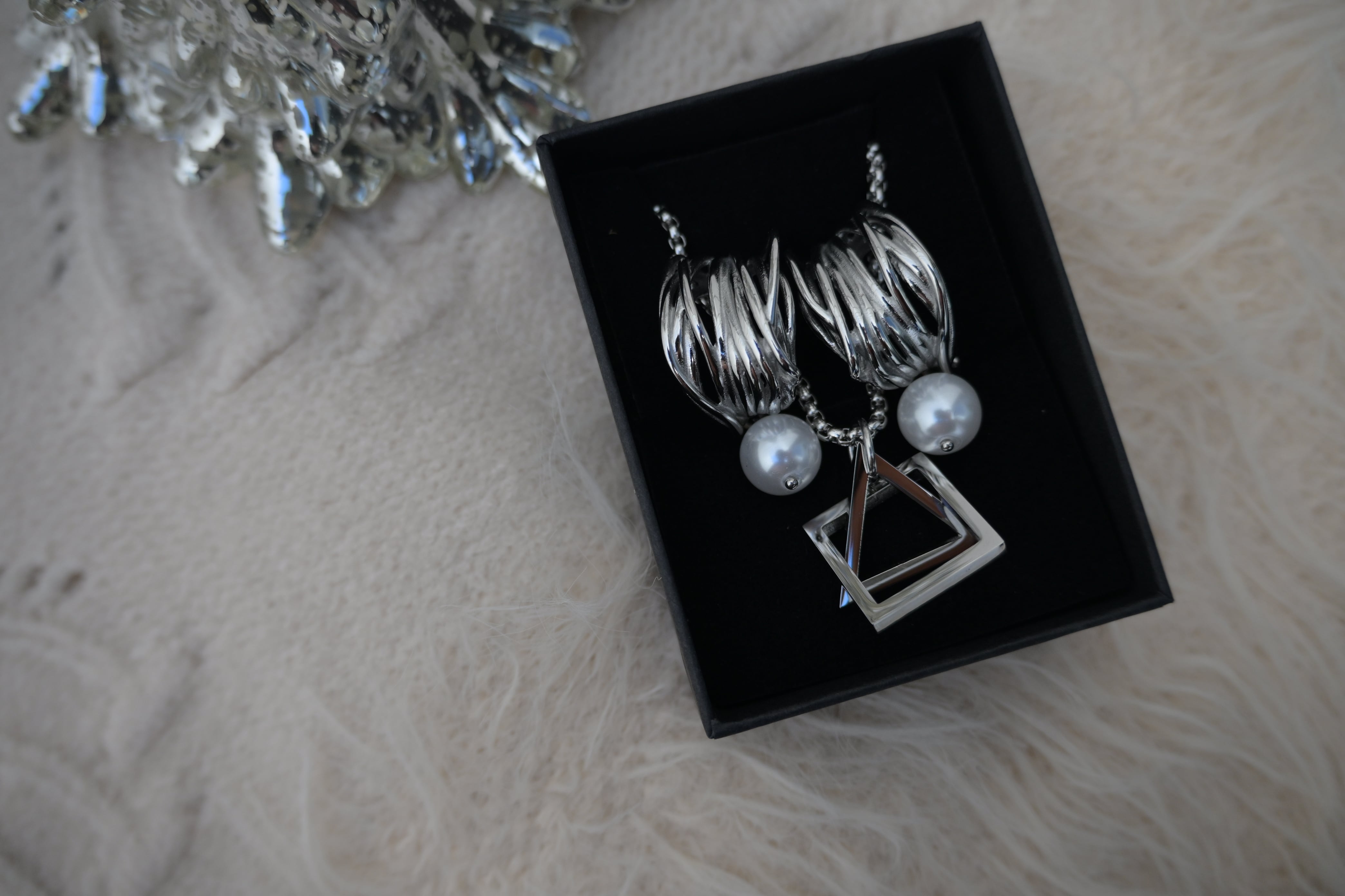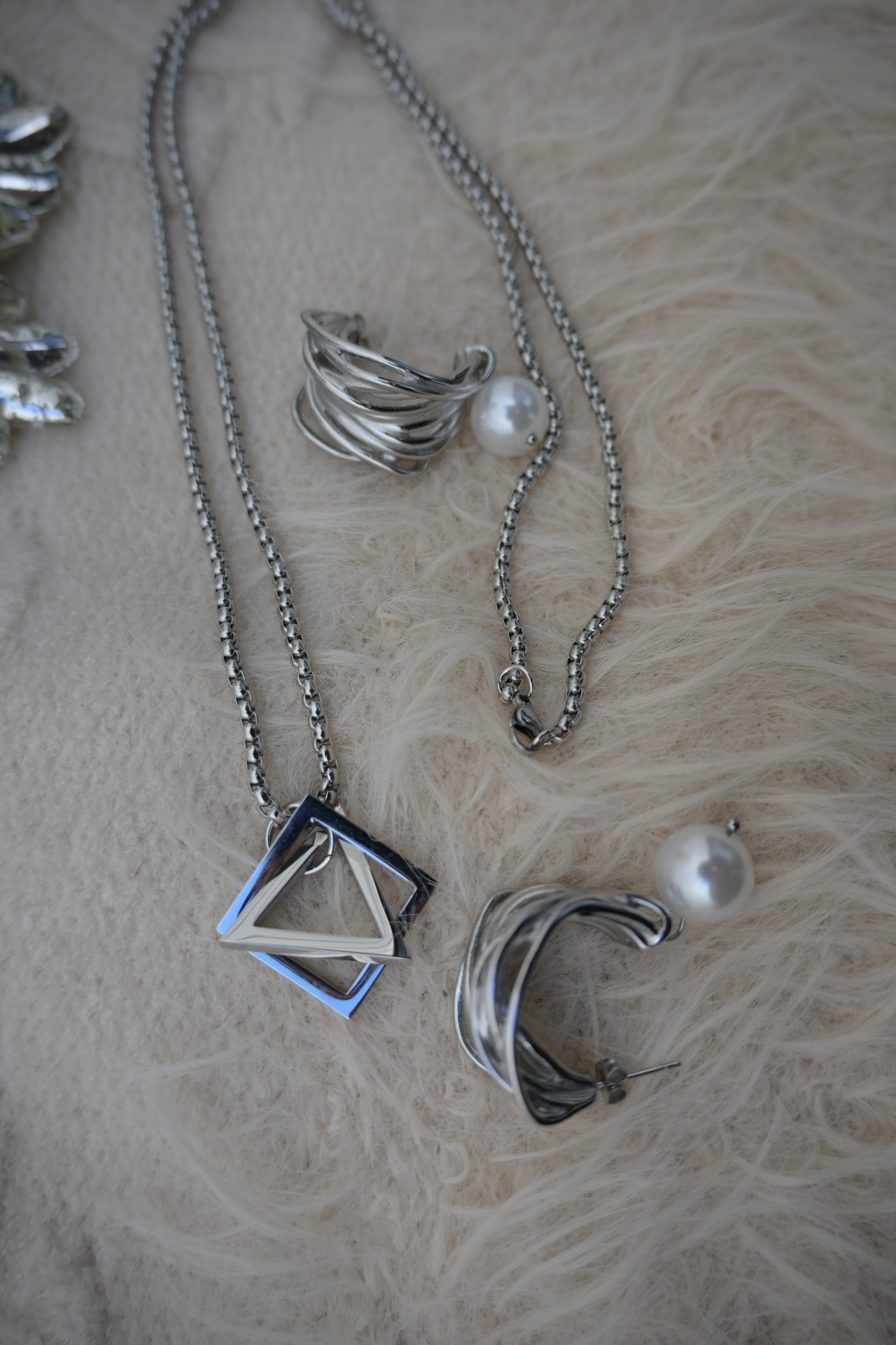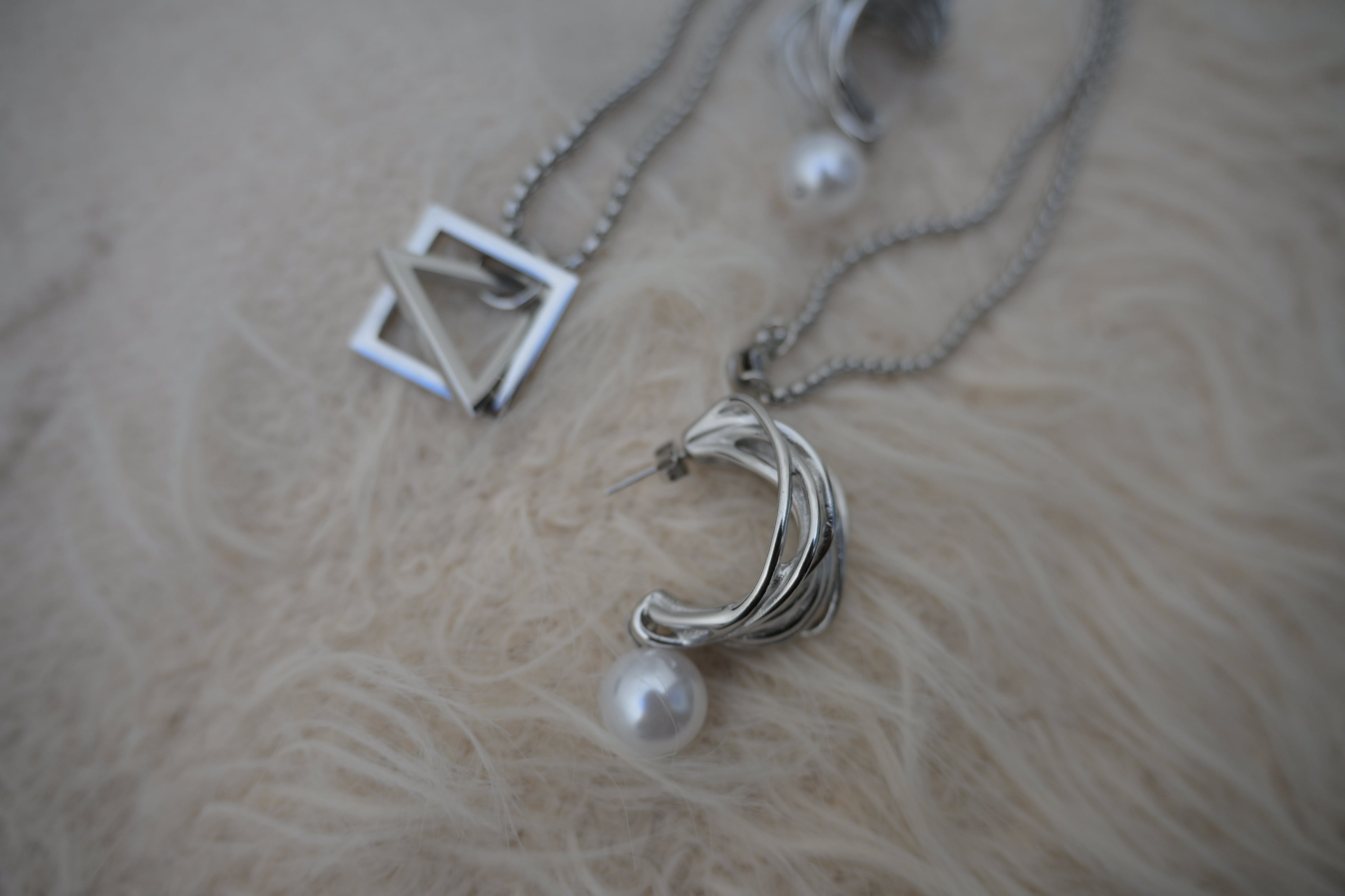 (パールアクセサリー × 幾何学モチーフネックレス)